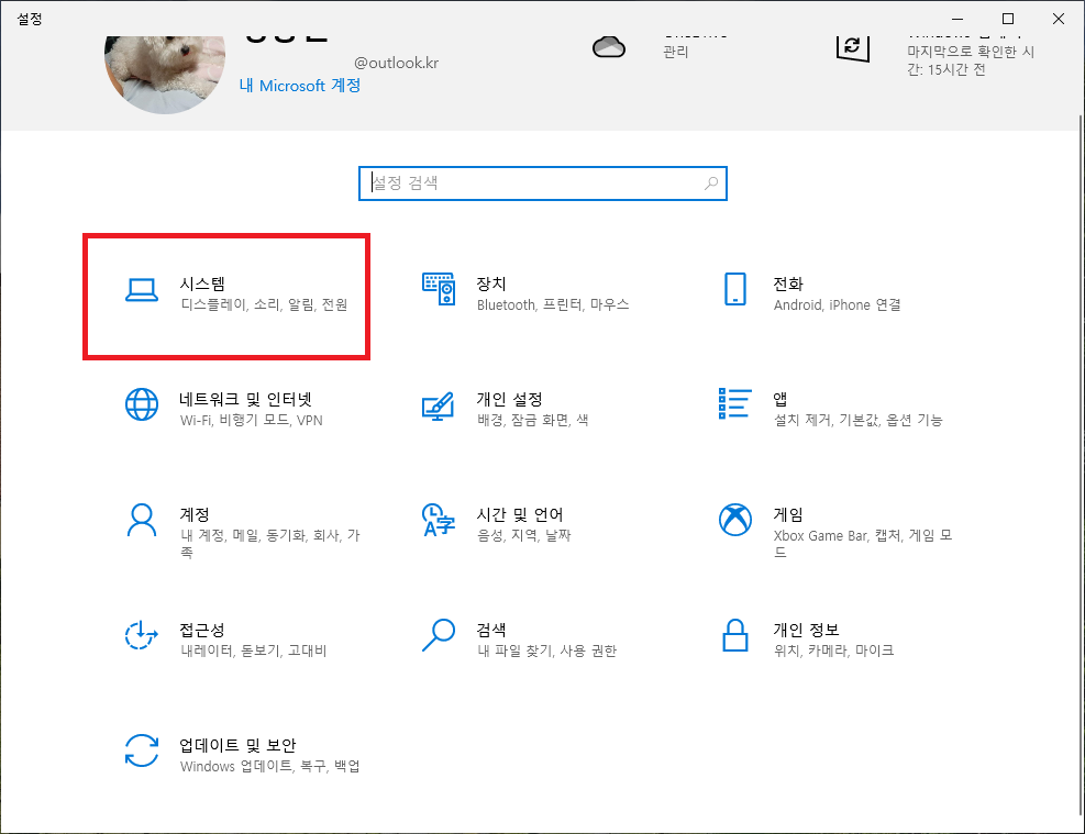 ▲ [윈도우키 + I] 단축키를 통하여 Windows 설정창을 열어주신 후 "시스템"을 클릭합니다.