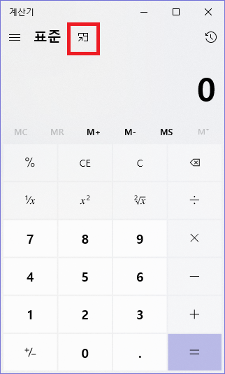 ▲ 우선 계산기 항상 위 기능은 표준 계산기 모드에서만 지원합니다.