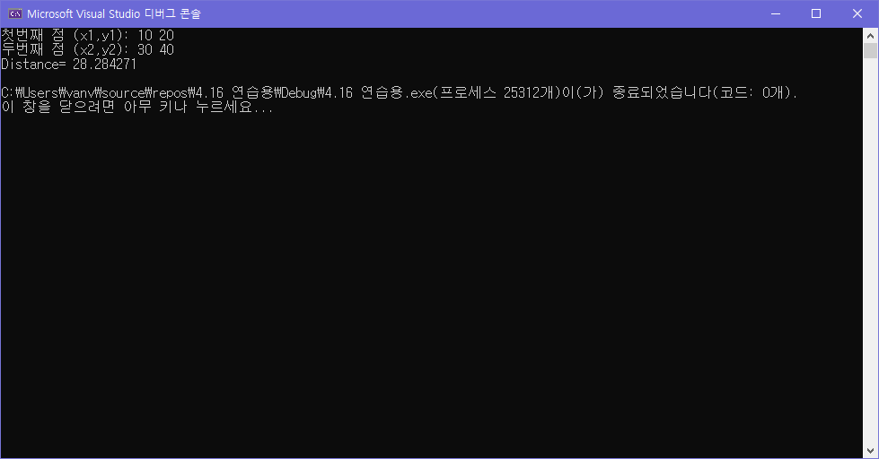 printf("두번째 점 (x2,y2): ");