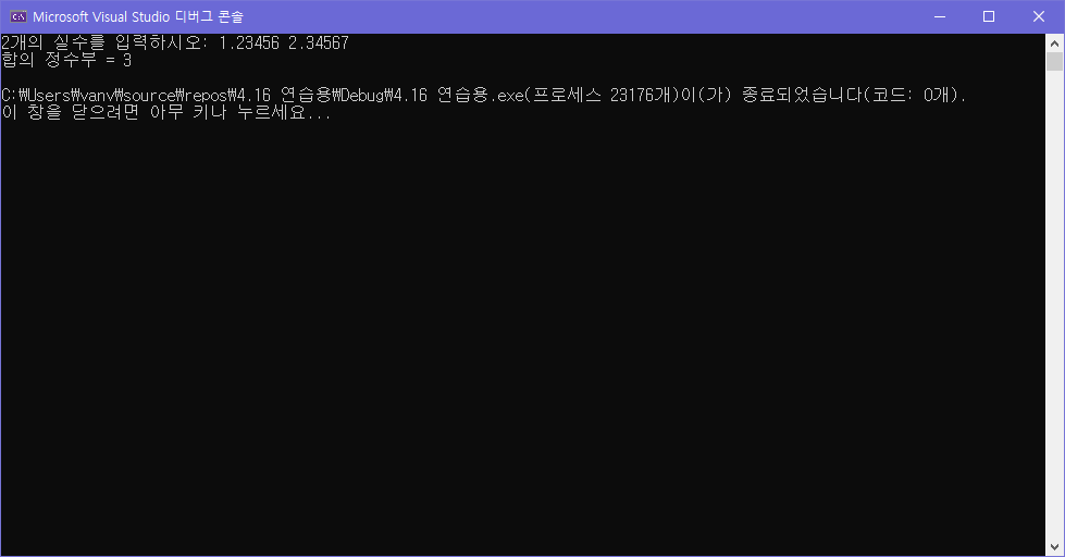 printf("2개의 실수를 입력하시오: ");