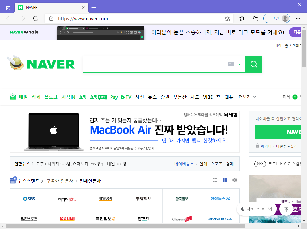 ▲ 설정을 완료 후 마이크로소프트 엣지을 실행하면 시작페이지가 정상적으로 변경된 것을 확인하실 수 있습니다.
