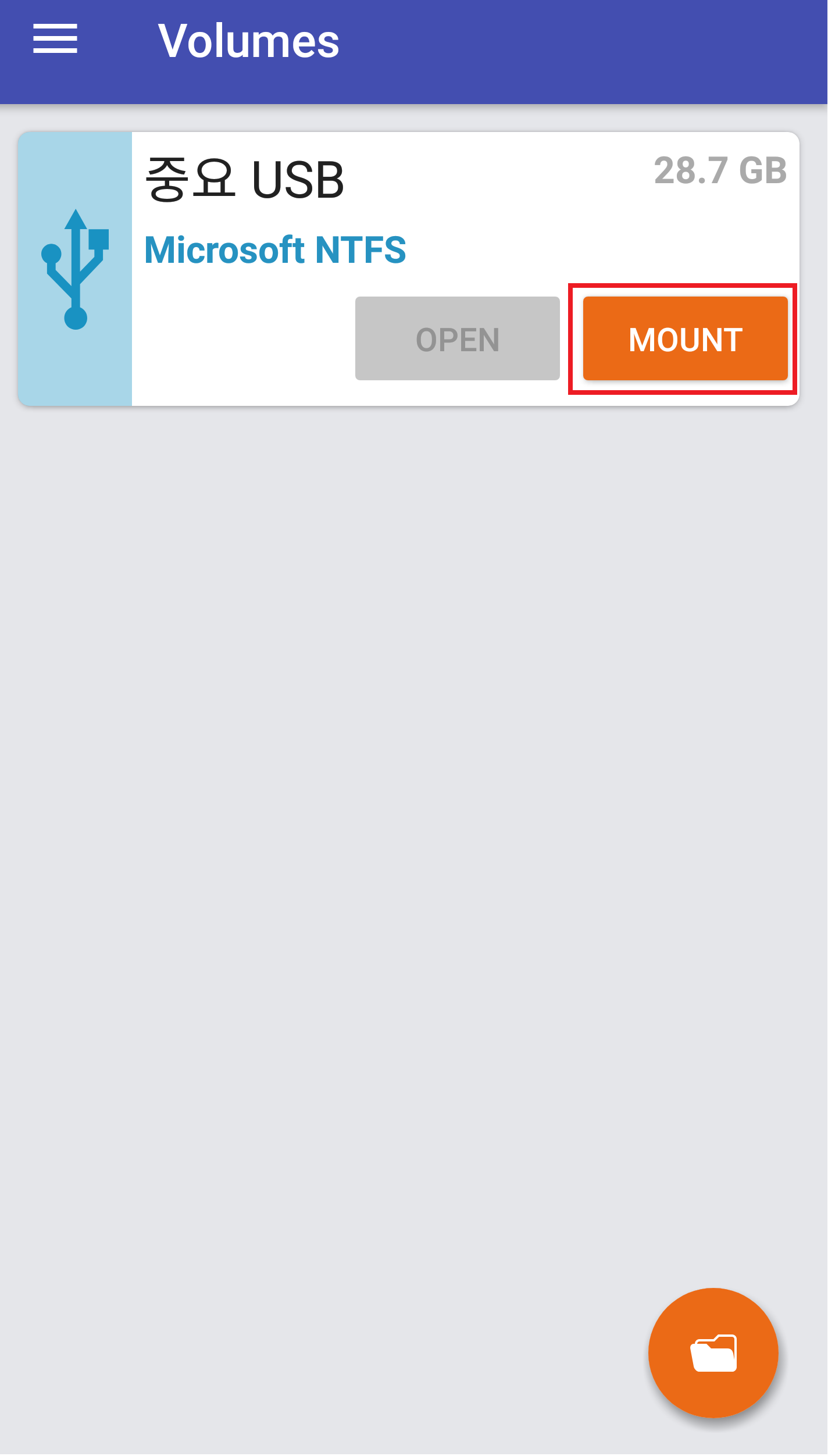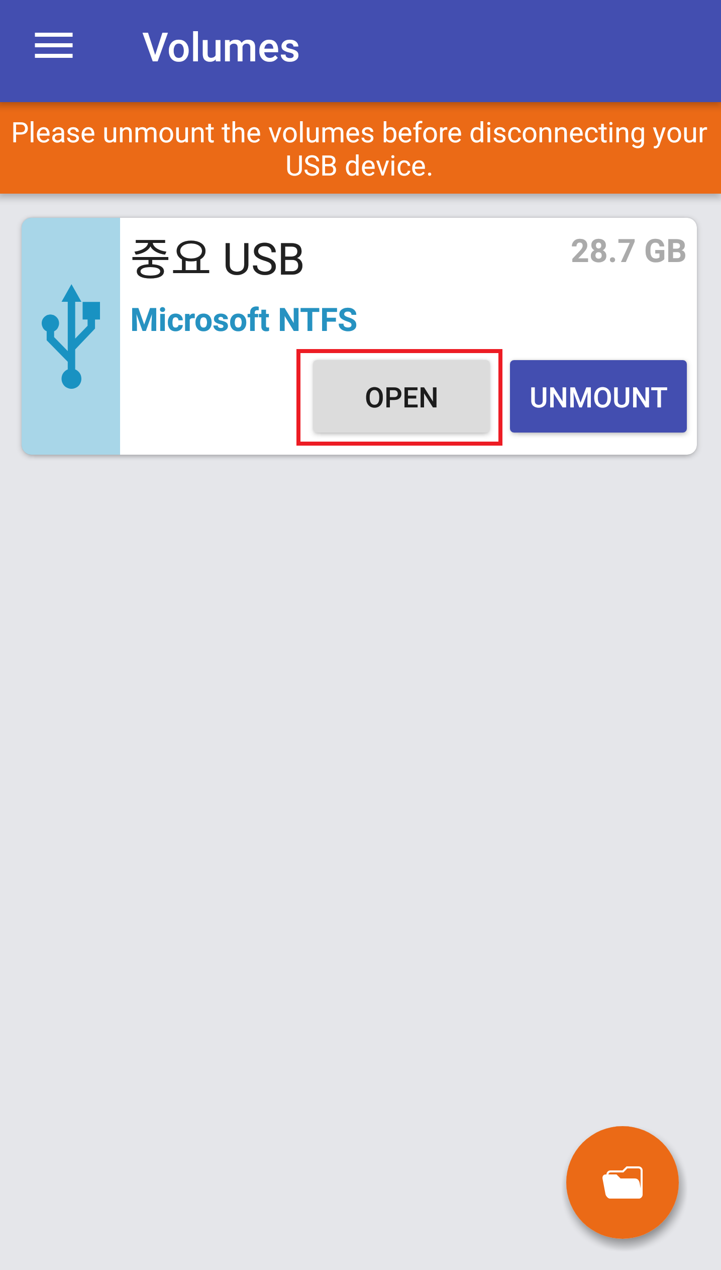 ▲ 마운트가 완료되면, OPEN버튼이 활성화 됩니다.