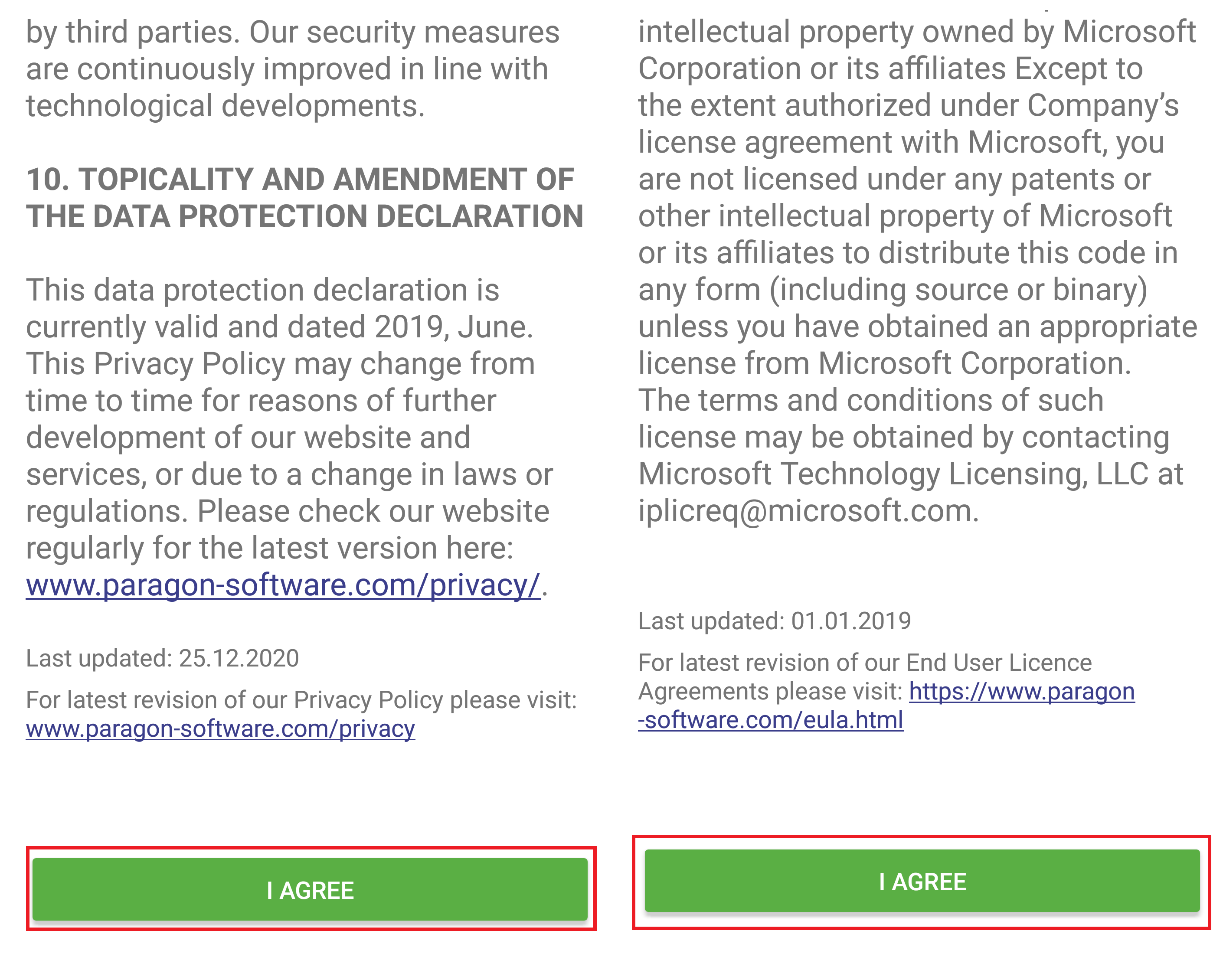 ▲ 설치가 완료되었다면, exFAT/NTFS for USB by Paragon Software 앱을 실행하신 후 나오는 약관에 "I AGREE"를 눌러줍니다.