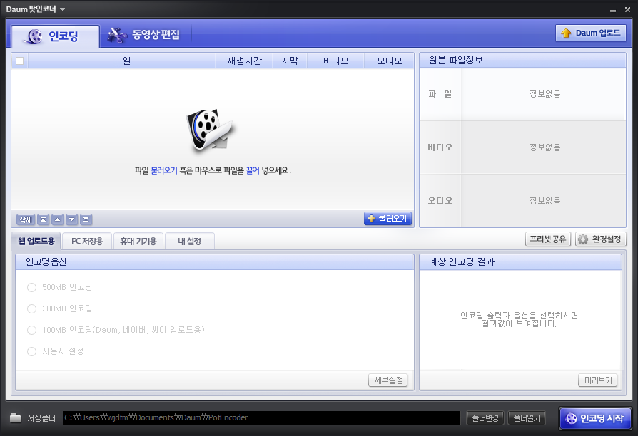 이럴때는 다음팟인코더 프로그램을 사용하면 인코딩을 쉽게 할 수 있는데요.