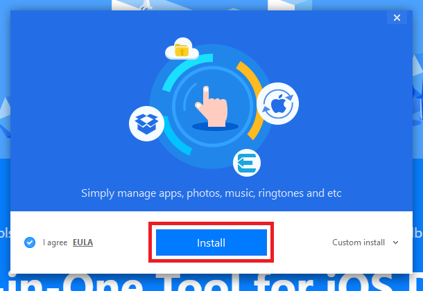 ▲ 3uTools 설치 프로그램이 실행되면, "Install"을 클릭하여 설치를 진행합니다.