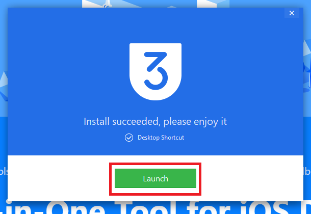 ▲ 아이패드 배터리 성능 확인 프로그램 3uTools 설치가 완료되면, "Lanch"를 클릭하여 프로그램을 실행합니다.