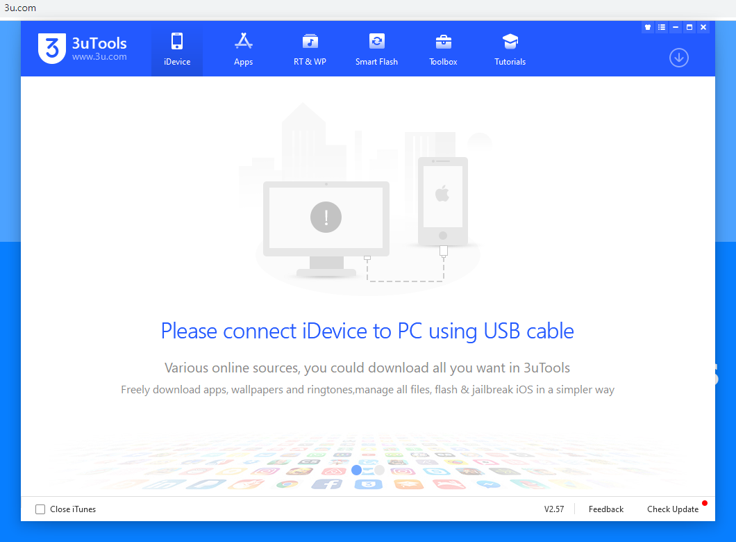 ▲ 3uTools 프로그램이 실행되면, 위와같이 아이튠즈 혹은 드라이버를 설치하라는 메세지창이 나타납니다.