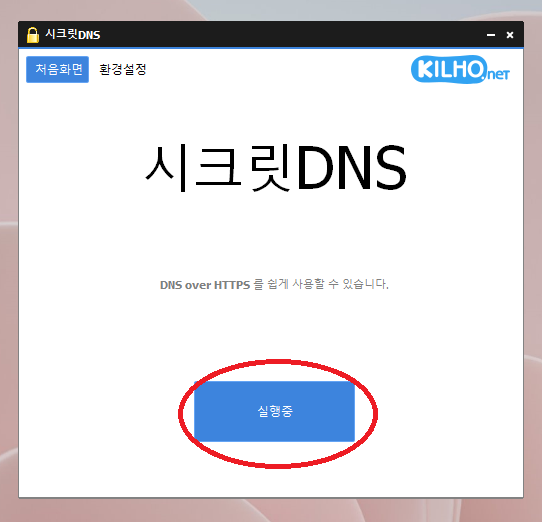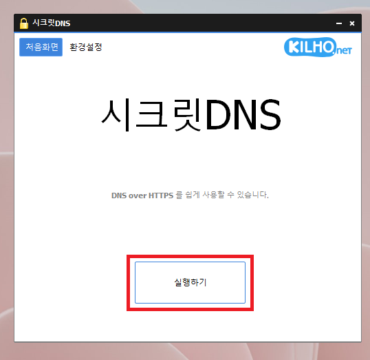 ▲ 시크릿 DNS가 실행되면 기능을 켜기 위하여 "실행하기"를 클릭합니다.