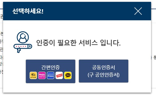 ▲ 이제 간편인증 혹은 공동인증서를 통하여 본인인증을 진행합니다.