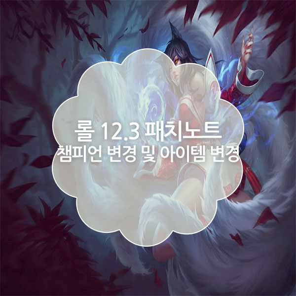 이번 롤 12.3 패치에서는 아리 챔피언 리워크가 예정되어있으며, 각종 아이템 변경도 예정되어있습니다.