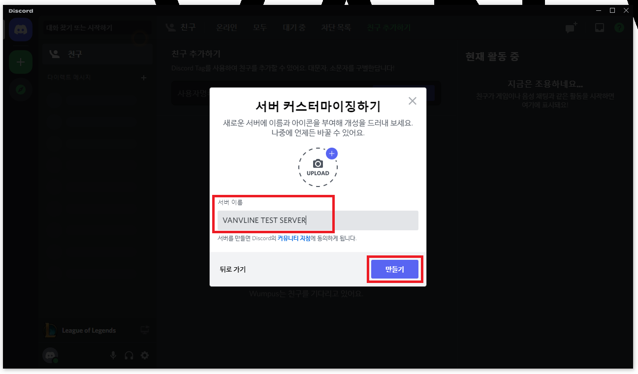 ▲ 서버 이름 및 아이콘 설정 후 [만들기]를 클릭합니다.