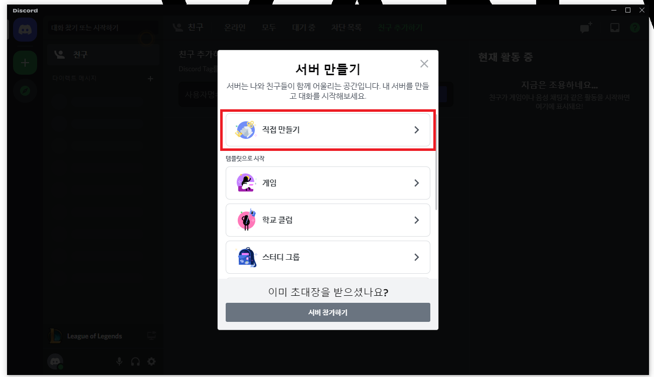 디스코드 서버 생성 및 삭제 방법