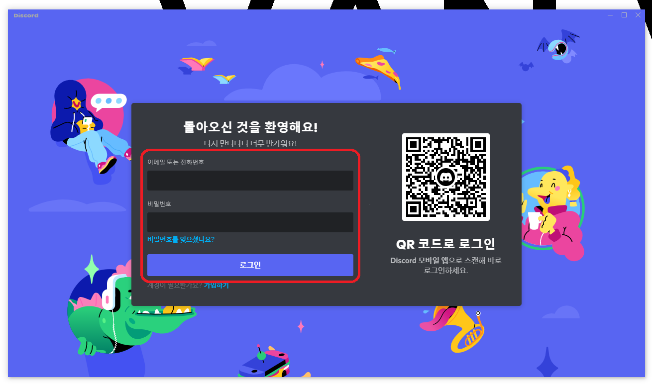 ▲ 우선 디스코드 프로그램을 실행 후 로그인을 진행합니다.