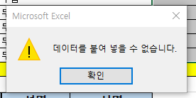 이번에는 엑셀 데이터를 붙여 넣을 수 없습니다. 해결 방법에 대해 알려드리려고 합니다.
