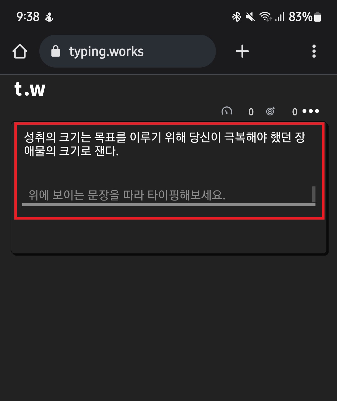모바일 타자 속도 측정 타이핑 웍스 페이지 바로가기