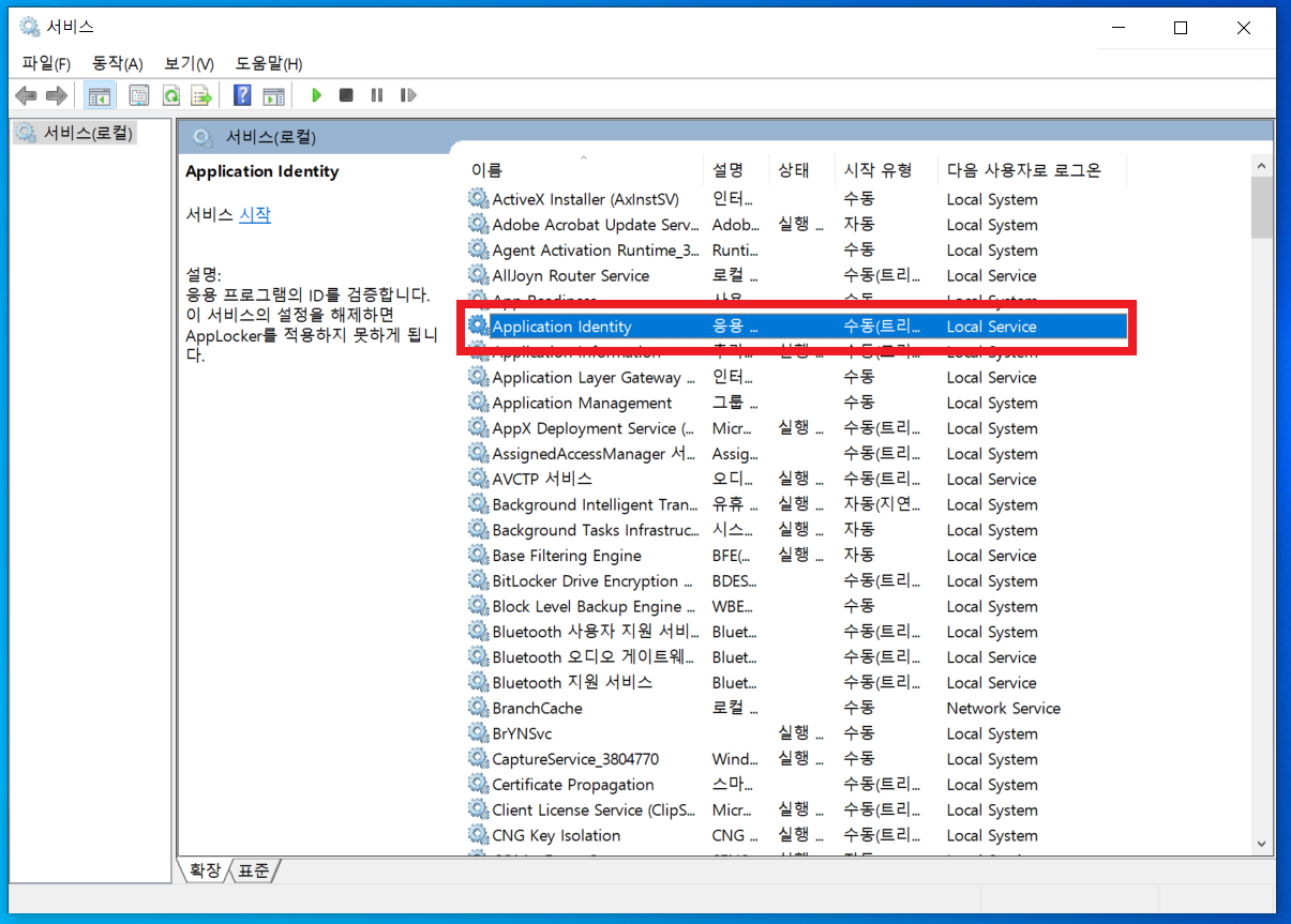 ▲ 서비스창이 나타나면, [Application Identity] 항목을 더블클릭 합니다.
