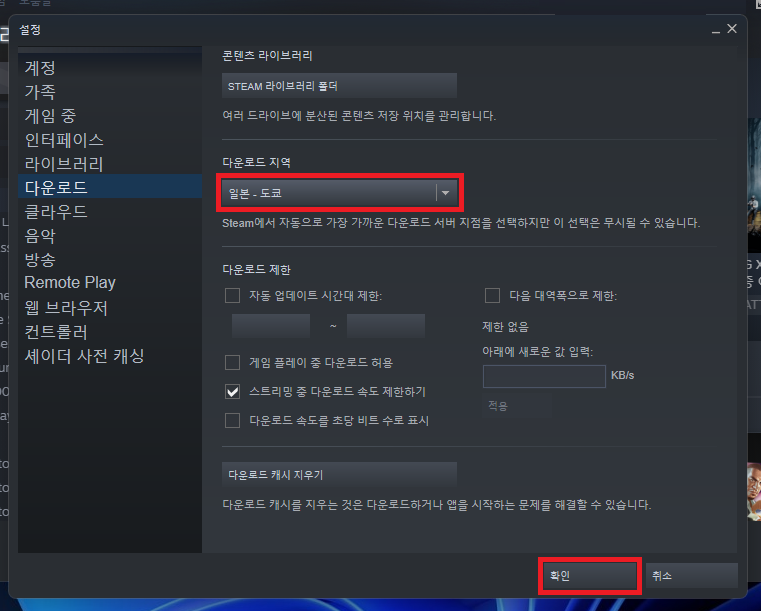 스팀 다운로드 속도 빠르게 하는 방법