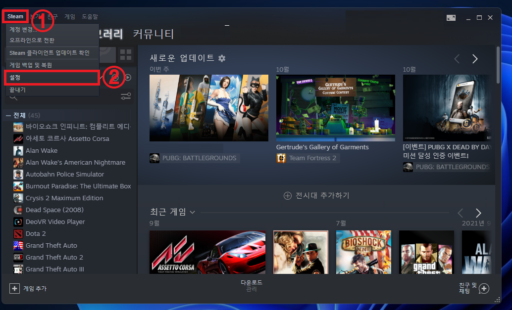 네트워크 문제가 아닌 경우 간단하게 2가지 방법을 통하여 스팀 다운로드 속도 느림 문제를 해결할 수 있는데요.