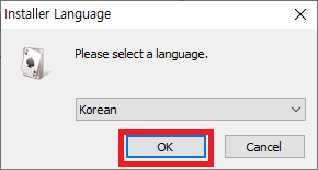 ▲ 설치언어는 "Korean"을 선택하신 후 "OK"를 클릭합니다.